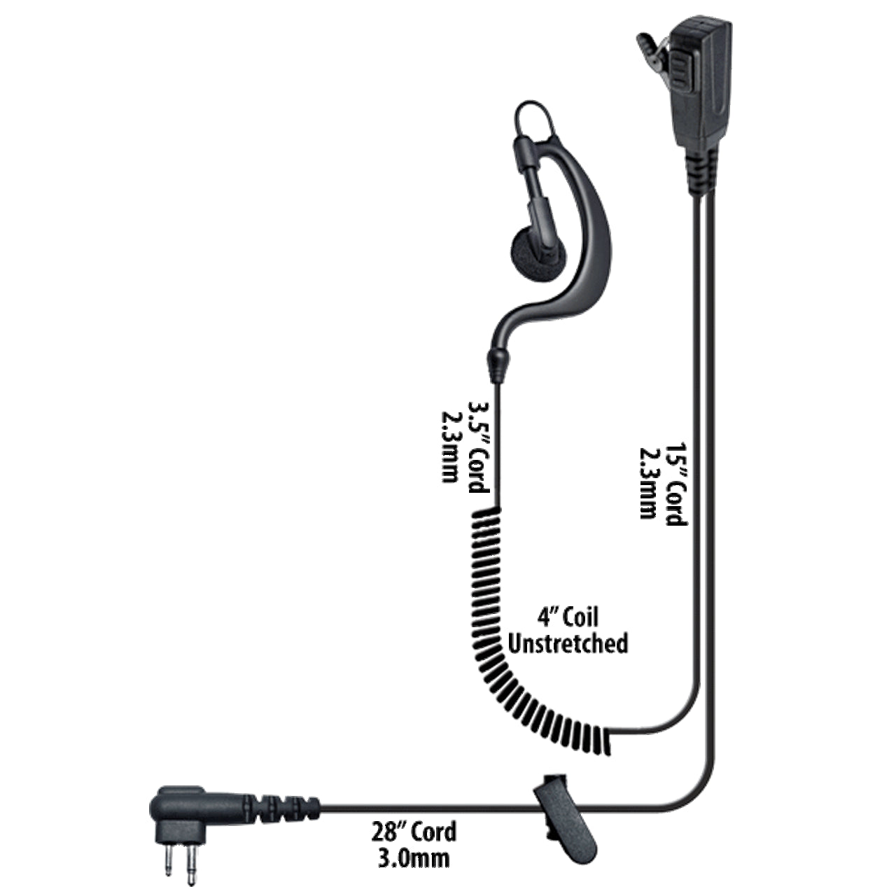 Adjustable earloop split-wire security kit for left or right ear usage.