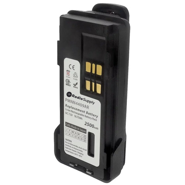 Replacement battery for the Motorola XPR3300, XPR3500, XPR7350, and XPR7550 two way radios. Replaces OEM battery number PMNN4409 and PMNN4409AR. The 2500 mAh capacity rating is 16% higher than the OEM's 2150 capacity. The battery is 100% IMPRES compatible, however it IS NOT compatible with new IMPRES 2 Chargers. Includes removable belt-clip.