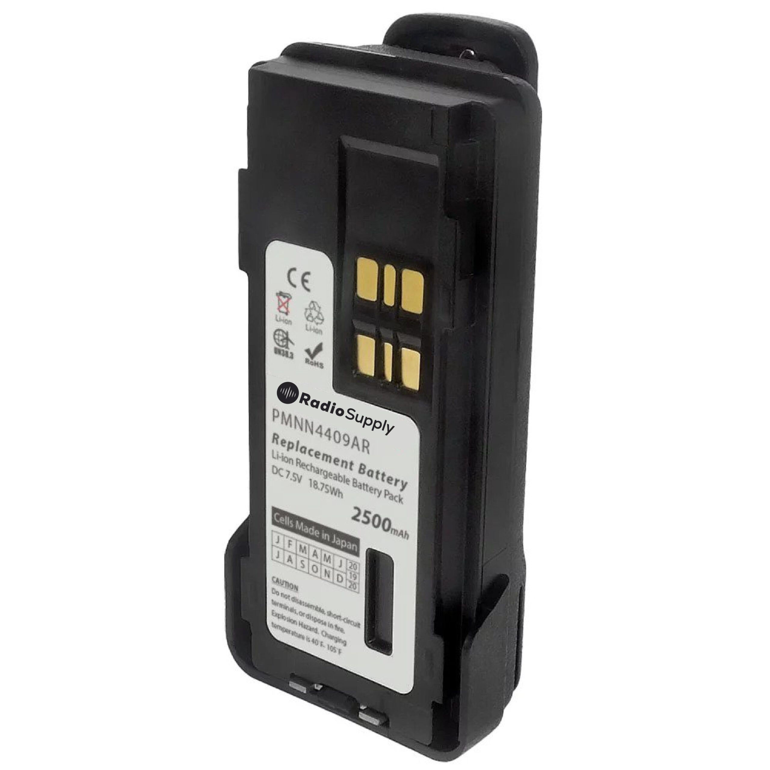 Replacement battery for the Motorola XPR3300, XPR3500, XPR7350, and XPR7550 two way radios. Replaces OEM battery number PMNN4409 and PMNN4409AR. The 2500 mAh capacity rating is 16% higher than the OEM’s 2150 capacity. The battery is 100% IMPRES compatible, however it IS NOT compatible with new IMPRES 2 Chargers. Includes removable belt-clip.